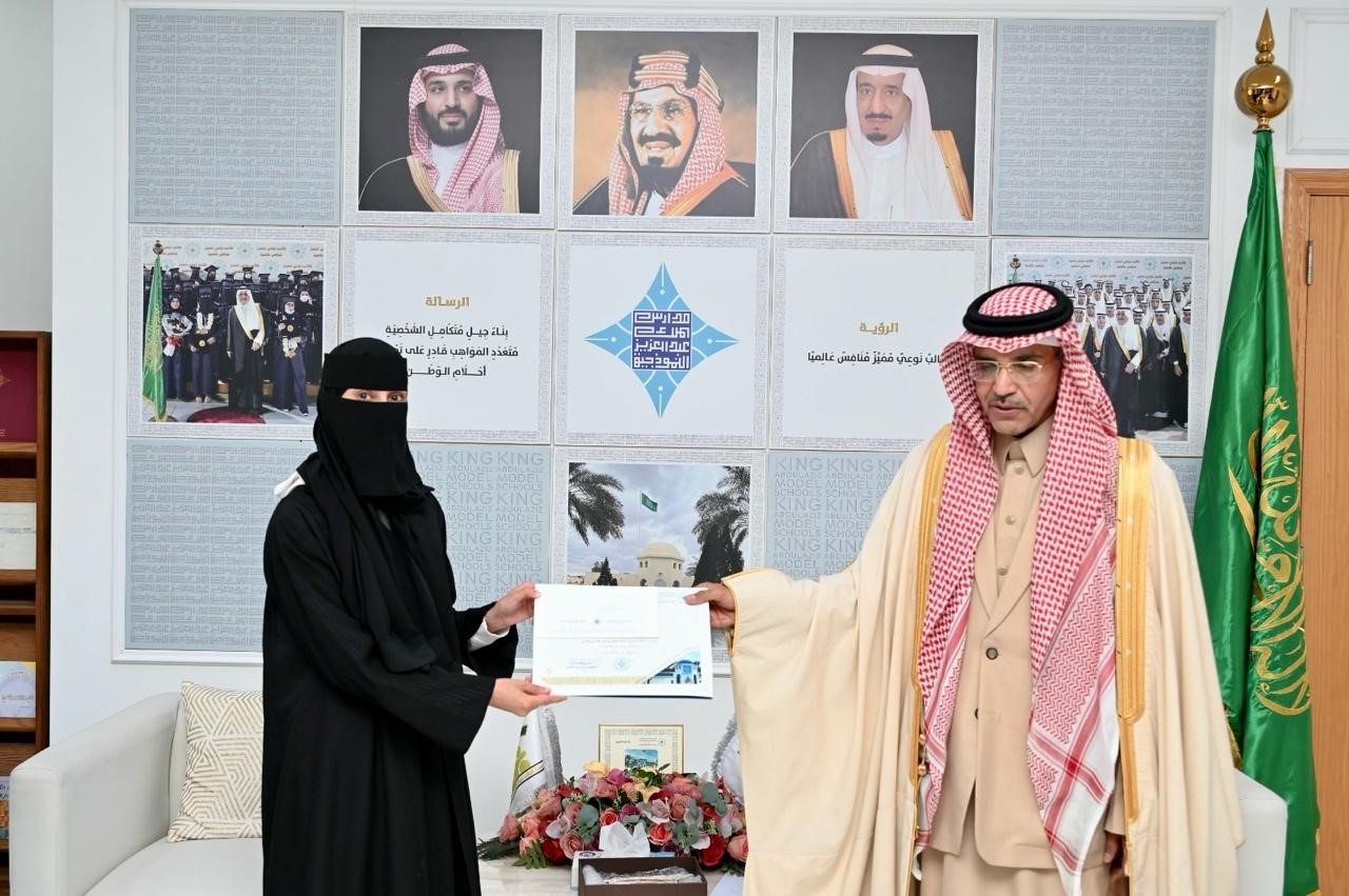 تكريم الطالبة رغد الحربي لتميزها في مهارة الإلقاء. ..