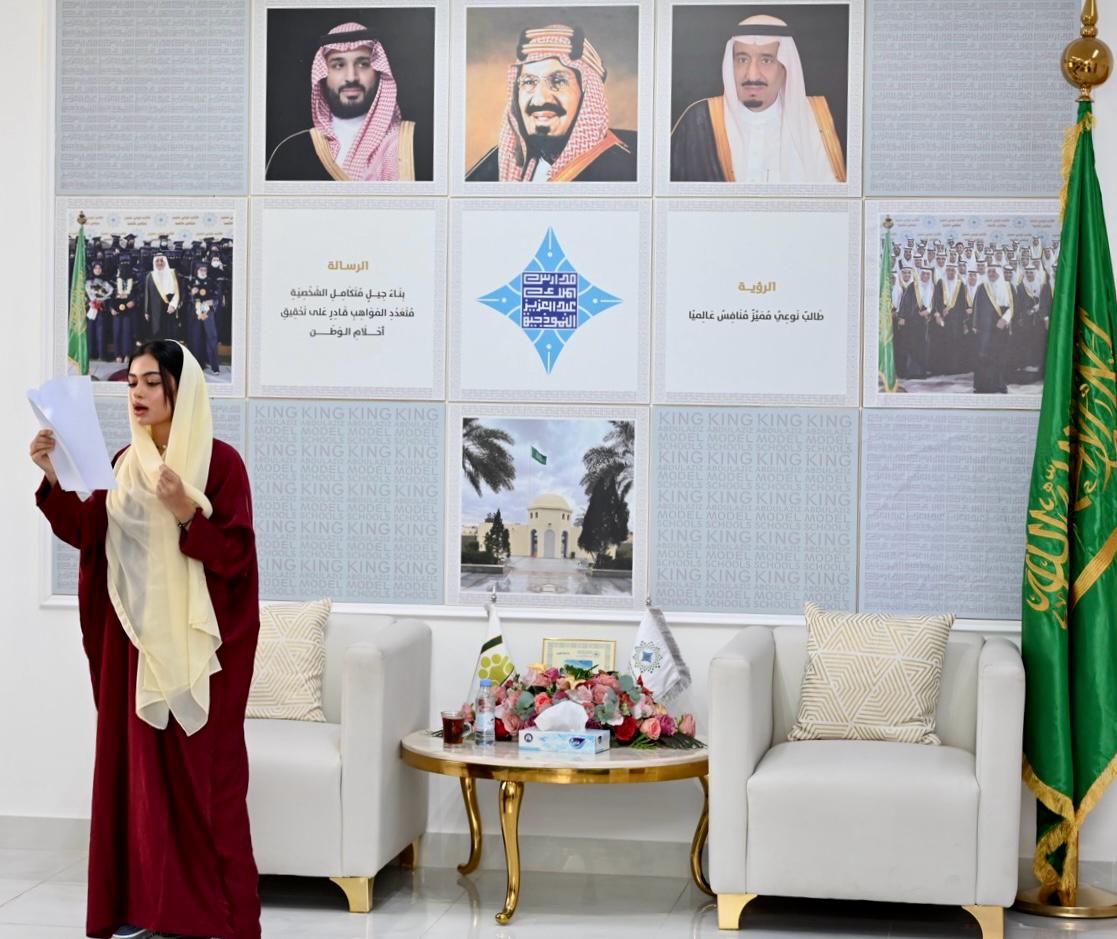 كرَّم سعادة المشرف العام على مدارس الملك عبدالعزيز النموذجية أ. إبراهيم بن حسين العُمري ، الطالبة/رغد الحربي، من المرحلة الثانوية- بنات، لتميزها في مهارة الإلقاء؛ متمنيًا لها دوام التوفيق والنجاح.